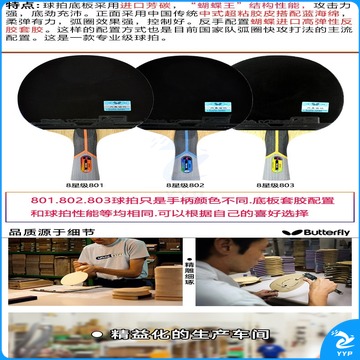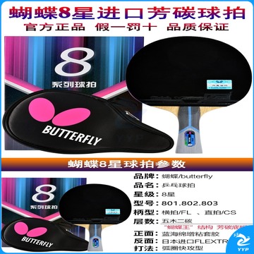 蝴蝶(Butterfly)乒乓球拍8星专业级蝴蝶王芳碳底板蓝海绵牌横直拍乒乓拍单拍 8星级802长柄横拍(单只)+赠品 教学仪器