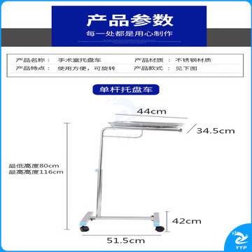 天爱 钢骑士 实验室不锈钢托盘架托盘车单双杆可移动置物架治疗盘升降车 单杆托盘车