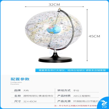 过氏天屿 天屿 32CM大号透明天球仪星座地球仪 地理高清学习模型仪器 教学教具学生实验器材 教学仪器