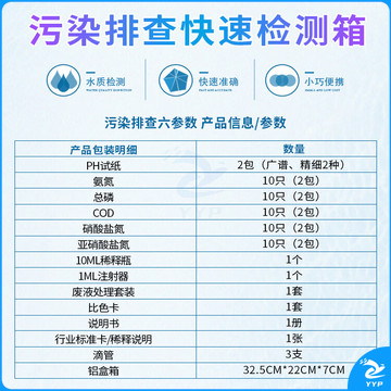 芬克 污染排查快速检测套装 多参数测试箱比色管COD氨氮总磷pH试纸 6参数 CODpH 6