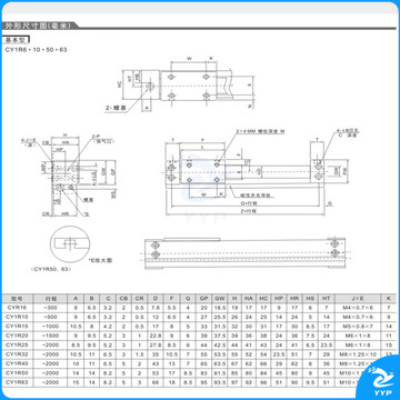 欧井 气动无杆气缸 CY3R/CY1R-10/15/20/25/32-100-150 磁偶式滑台导杆 CY1R25-200