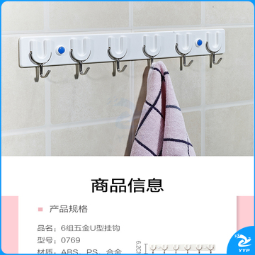 茶花(CHAHUA)0769六组五金U型挂钩 39*6.2*2.2 1个/袋(单位:袋)