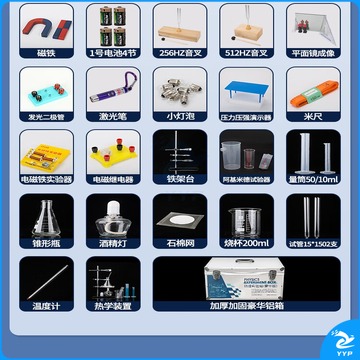 初中物理实验器材全套 电学磁学光学力学声学热学实验箱盒 初二初三八九年级中学学生物理套装 【基础A款】器材箱 教学仪器