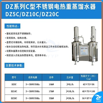 双哈 不锈钢电热双重蒸馏水器20L/H 实验室蒸馏水机 器DZ20C 安全用仪器