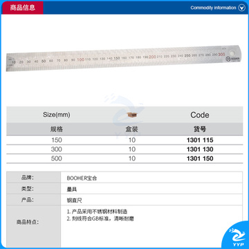宝合(BOOHER) 1301130 不锈钢直尺300mm(计价单位:把)