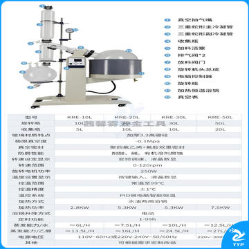 惠利得 定制科瑞仪器 中大旋转蒸发器实验室RE10L~50L旋转蒸发仪配件减压蒸馏 KRE-20L(电动升降)