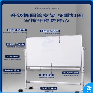 太将玖磁吸白板写字板支架式带轮儿童小黑板家用教学可擦写移动画板 【-双杠】90*150黑框双面白板黑 教学仪器