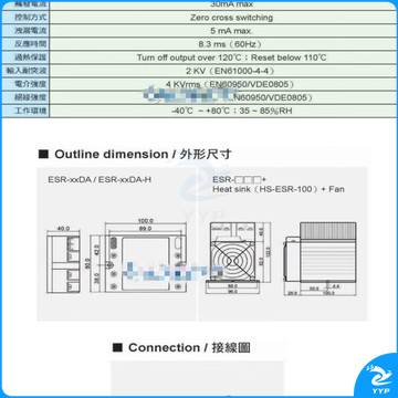 迈恻亦 阳明ESR-25DA/40DA/60DA/80DA/100DA-H三相固态继电器FOTEK ESR-25DA-H