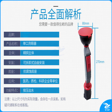 天爱 钢骑士 单口洗眼器 高校实验室教学家具钢木实验台水柜配套单口洗眼器含软管 单口洗眼器