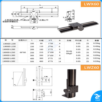 里博 LWX60长行程齿轮齿条微调平台 XYZ轴燕尾槽CCD光学视觉手动滑台 加滑块100元/个
