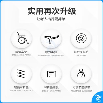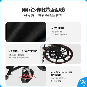 杭州振兴/Zhen Xing 奥瑞珂 手动折叠手推可折叠便携式家用老年人残疾人代步车轻便小巧免充气轮胎 经典大轮款 安全用仪器
