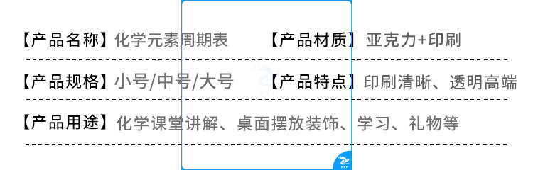 海斯迪克 HKCL-272 亚克力化学元素周期表 学习展示牌 200×125×24mm(单位:件)