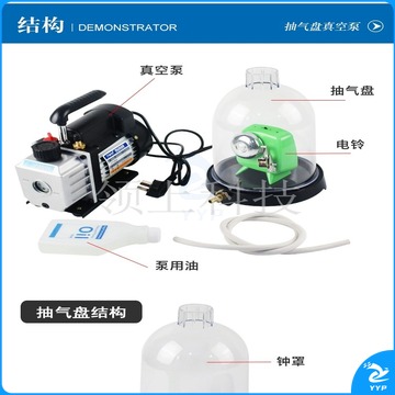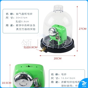CURADHAN 抽气盘 真空泵 玻璃钟罩抽气机附真空罩 物理实验器材教具 TJe5393