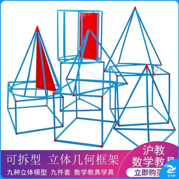 铂特体 可拆型立体几何形体框架模型九件套 正方体特殊长方体圆柱体圆锥体小学数学教具教学仪器 可拆几何体九件套
