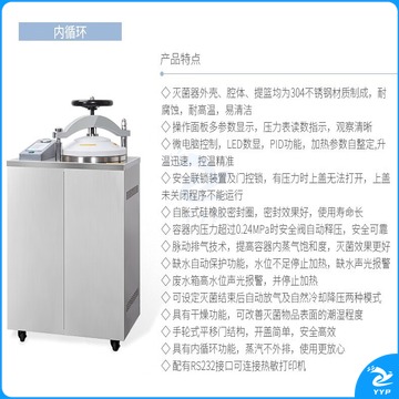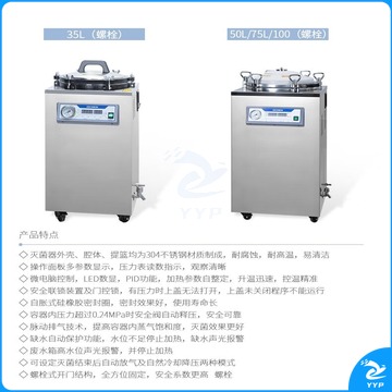 欧井/Eurgeen 欧井 科技不锈钢高压蒸汽立式锅数显实验室高温压力消毒器 75L(内循环) 教学仪器