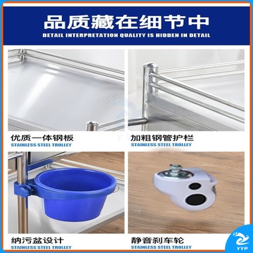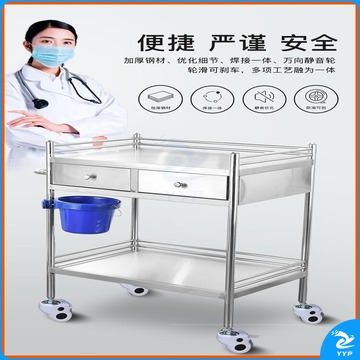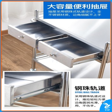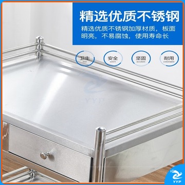 科能 304不锈钢车加厚多功能美容小推车医院仪器车护理车器械台护理置物车换药车 特厚304二层双抽大号【80*48*86cm】 安全用仪器
