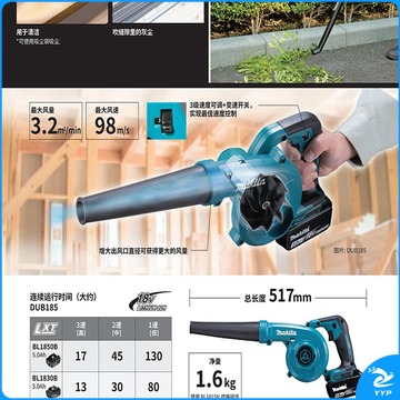 牧田/makita 牧田 DUB185 吹吸两用式吹风机 吹尘机 吹雪机 18V5.0Ah两电 农林牧渔专用仪器