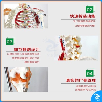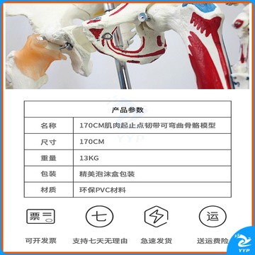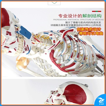 装置 皖天煜安医学人体骨骼模型85cm骨架176cm全身可拆卸带肌肉起止点标识椎间盘神经韧带解剖结构 85cm带肌肉起止点标识+韧带【脊柱可弯曲】 安全用仪器
