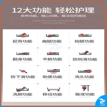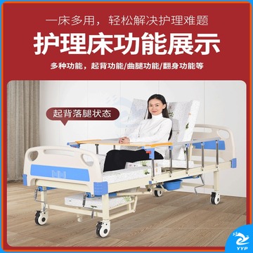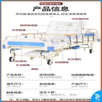 塞伦盖蒂 护理床老人家用多功能病床医院瘫痪病人康复手动升降翻身 中曲加厚升级+气垫 安全用仪器