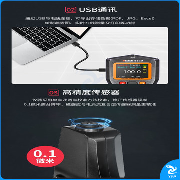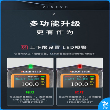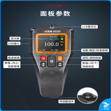 胜利仪器(VICTOR)涂层测厚仪数显高精度汽车漆膜厚度测量仪铁铝两用 VC852D