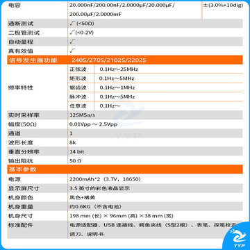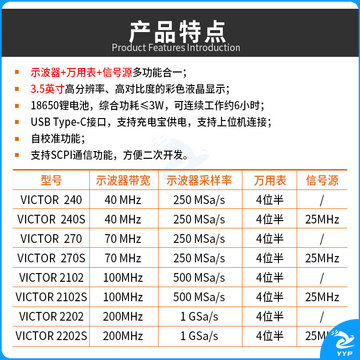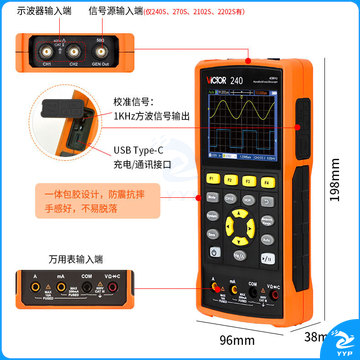 胜利仪器(VICTOR)手持示波器 双通道彩屏示波表万用表 二合一 VC240S(内置信号源)