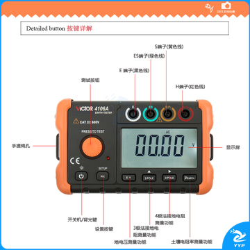 胜利仪器(VICTOR)接地电阻测试仪 土壤电阻测试仪摇表 交流真有效值 VC4106A