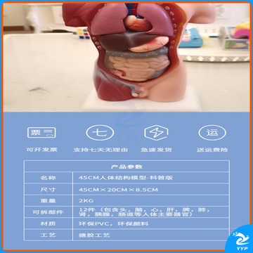 宸泽 装置 2022新款儿童版丨人体可拆卸医学解剖模型身体内脏器官全身骨骼架结构玩具 45cm人体模型 安全用仪器