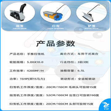鲁环(LH)多功能大功率手推式扫雪机高效除雪三合一市政道路推雪抛雪