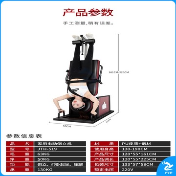 JTH倒立机家用电动健身器材人体拉伸器颈椎腰椎全自动牵引床倒挂神器 519ST倒立牵引带停电保护 安全用仪器