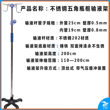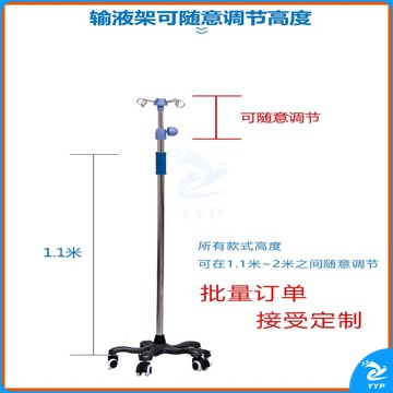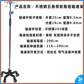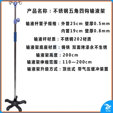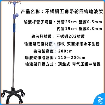 黑狗 BLACK DOG 家用移动输液架 加厚不锈钢输液架子可调节点滴架吊瓶架医院诊所 五角带轮底座 双钩双瓶框 安全用仪器