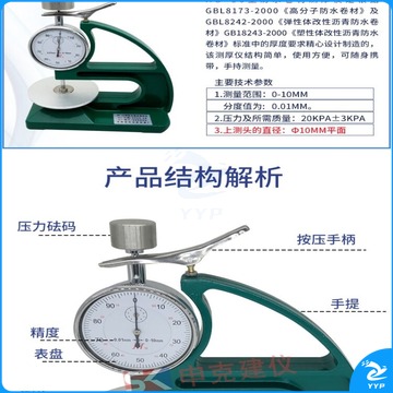 盛融乾 橡胶测厚仪塑料测厚规防水卷材油毡厚度测量仪表厚度计涂料 压头6mm橡胶用普通表 教学仪器