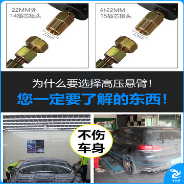 惠利得 洗车店高压悬臂摆臂摇臂吊臂摇杆旋转臂360度洗汽车机设备铝合金 14mm外丝不锈钢悬臂 5.5米管