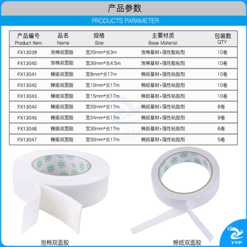 伏兴 FX955 棉纸双面胶带 高粘度两面胶带办公胶布 半透明棉纸胶带 24mm*17m(8卷装)(箱)