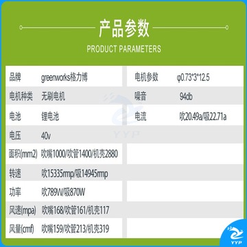 格力博(greenworks) 40V锂电吹吸二用机吹树叶机电池吹风机吹风机道路清扫一体机26AH背包电池