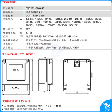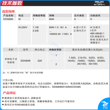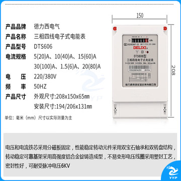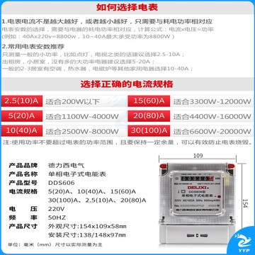 德力西电气 DDS606 电度表 单相电表 电能表 15(60)A