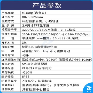警翼.法翼V3执法 记录仪小型取证仪3200万高清60帧/秒高速摄影128G 安全用仪器