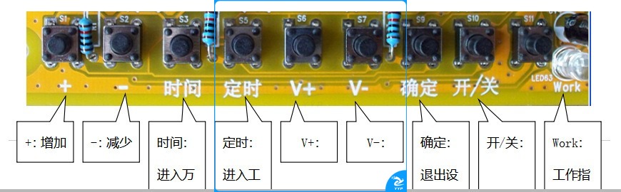 量”,在对应的内容里都可以通过“+”,“-”来调整,通过定时来循环选择需要设定的内容。