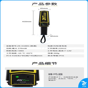 中控/Zkteco 中控 /Zkteco Zk-D100S (电池版) 手持式金属探测仪/探测器 安全用仪器