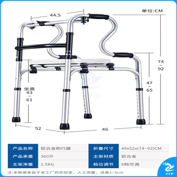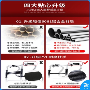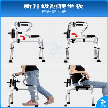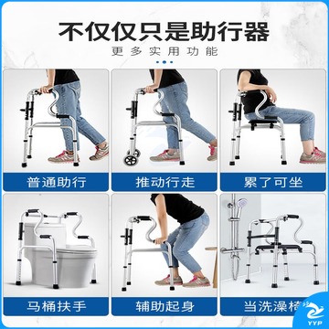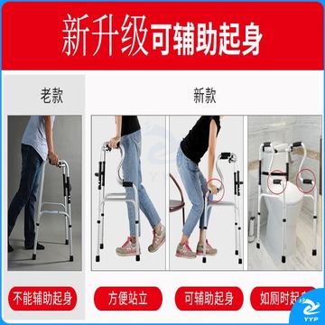 雅德 老人残疾人康复拐杖轻便折叠伸缩铝合金助步器骨折走路辅助行走器车扶手架老年人防滑手推车 0【加厚铝合金】双弯辅助起身款+8档可调 安全用仪器