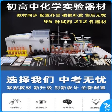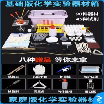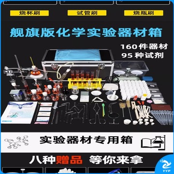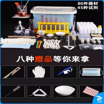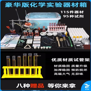 六鑫 初中化学实验器材全套 试剂套装铁架台蒸馏装置高中初三九年级玻璃仪器中学中考化学实验箱 科研版(90试剂+190器材)合金箱 教学仪器