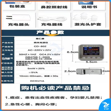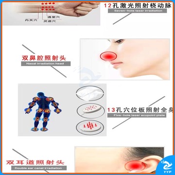 罗脉 半导体激光仪纳米光波仪650纳米激光照射器合邦生命极光半导体三高仪糖老大 12孔主机+鼻腔耳道+9孔真板 安全用仪器