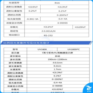 恩谊 比例双光束紫外可见分光光度计实验室光谱分析仪可见光荧光测定仪台式数显光谱仪 UV1800PC 教学仪器