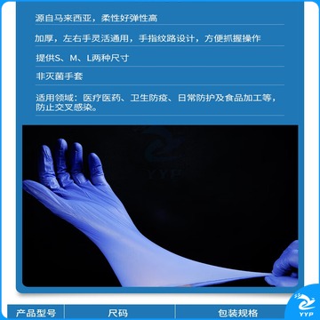 Biologix 巴罗克一次性丁腈手套S M L蓝色 97-6114 L 1000/箱 教学仪器