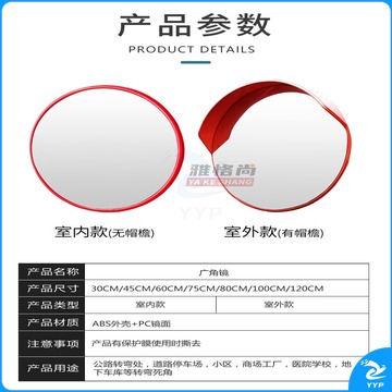 雅恪尚 交通广角镜安全凸面镜路口转弯处停车场转角反光镜 60cm室内 教学仪器
