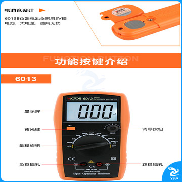 胜利仪器(VICTOR)电容表 高精度数字手持带背光数显表 测试仪 VC6013