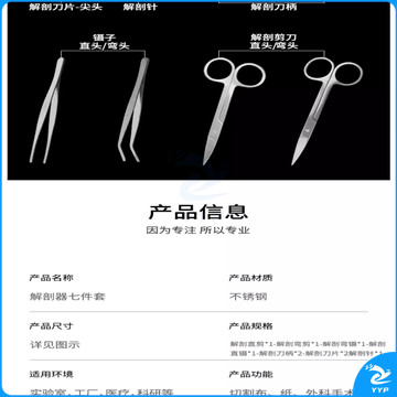 千奇梦 生物解剖器不锈钢昆虫解剖针探针剪医学生物实验室用品器材教学仪器 生物解剖器【七件套】