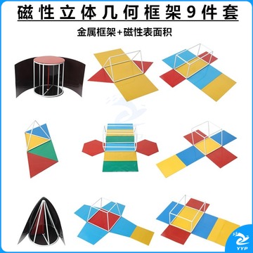 六鑫 磁性立体几何框架几何形体框架模型小学数学六年级下册教具正长方体圆柱圆锥三四六棱柱锥台表面积展开 形体【磁性9件套】 教学仪器