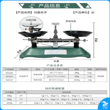 安赛瑞 托盘天平 架盘砝码机械物理天平 药材秤 教学仪器 601108