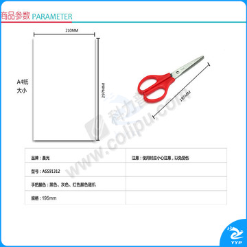 晨光 M&G 剪刀 ASS91312 195mm (黑色、灰色、红色颜色随机) 12把/盒 (颜色随机)