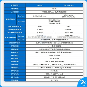 DL16逻辑分析仪 16通道ARM FPGA STM32调试器协议解码 高采样率 PWM输出 DL16 Plus,1GHz+小间距测试钩+大间距 教学仪器